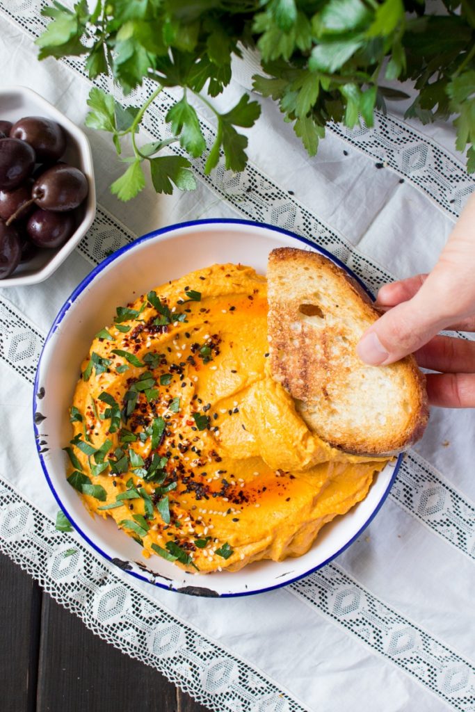 This east meets west recipe combines Tahnini’s nuttiness with pumpkin sweetness for a rich hummus purée. The surprising combo is best served with a drizzle of olive oil and sprinkled with fresh herbs. Head over to the full recipe, here.