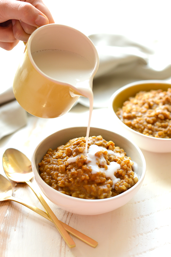 Inspired by the traditional roasted flavor of pumpkin pie, this smooth recipe doesn’t involve a pie crust and it’s healthier. Similar to oats, the grainy sweet treat is a throw-all-in and mix recipe. Easy to fix, top and enjoy with nuts, coconut flakes or raisins. Make this thanksgiving hack, here.
