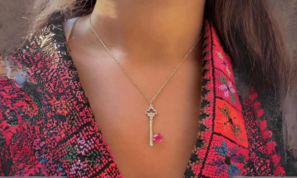 Since 2003, Dima Jewellery has been making beautifully handcrafted pieces that meld both the ancient and modern worlds. Founded by Dima Rashid, an entrepreneur of Palestinian roots who made a home for herself in Egypt. Pooling from her mixed identity and experience, she created several pieces of jewelry devoted to bringing the Palestinian nation to the limelight. Tuning into her passion and talent, she crafted a necklace in the shape of a key to symbolize the Palestinian key, a symbol of all the homes lost in the Nakba. She included a red gem in the key to symbolize the undying fight of the martyrs in Palestine. Her collection also includes a simple Palestine map necklace.