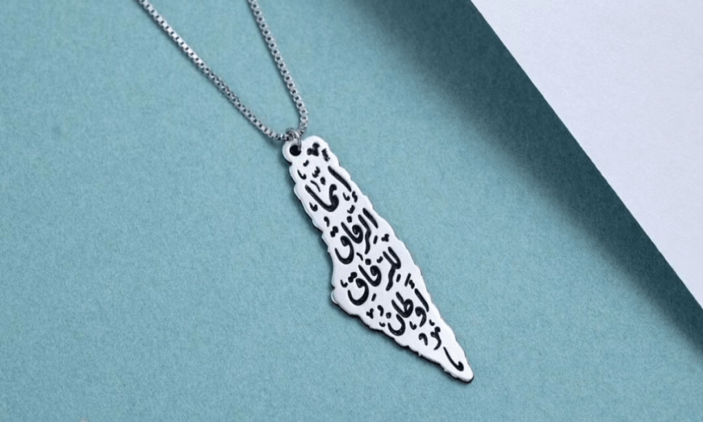 Specializing in silver jewelry is the Jordanian Elmas Jewellery, a storefront at Amman’s Marj alhamam that crafts simple, elegant and classy jewelry. For Palestine, the brand made several pieces in different styles and variations to take part in the ongoing support for the nation. At their store, one of their special items includes a mini Palestine map charm made specially for Pandora bracelets. They also have their very own Palestine map necklaces engraved with Arabic calligraphy that translates to “friends are home to each other”, referring to how Gazans find solitude in each other’s company.