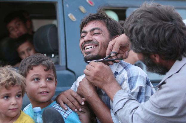 People in Manbij, a city in northern Aleppo, Syria, are celebrating their triumph against the militants of Daesh (or ISIS) after more than two years of besieging the city. Civilians and fighters from the Syrian Democratic Forces, Syrian Arab Coalition celebrated equally by performing acts that were not allowed during Daesh’s siege.
