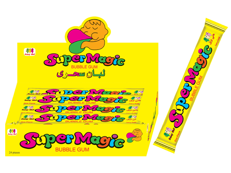 Honeywell, the factory that opened its doors in 1986 and introduced Egyptians to popular 90s snacks like Chicobon (colorful sugar-covered chocolate drops), has also spread the well-loved bubble gum known as Super Magic. The 15 cm long stick of strawberry sugary gum was sort of magical, in a literal sense. As kids would begin chewing a piece of this pink gum, they’ll notice it changing color to green or purple or blue and their tongue will also get a paint job and change color as well.
