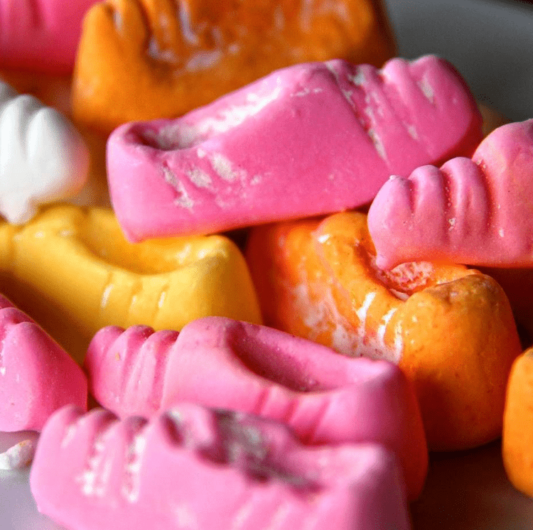 Lebanon’s 90s snacks seem to have a special relationship with marshmallows. Not only are they the central filling of Tarboosh chocolates, they are also eaten as a special candy in the form of small colorful sugar shoes. Known as “Sbabeet”, they came in a wide variety of flavors. What is special about these sugar shoes is that they weren’t sold as a packaged product that would line the shelves of supermarkets, they were instead sold in specialty sweet shops where the seller would use a metal shovel to scoop up whatever amount you want, dump it in a plastic bag and wrap it up for you to enjoy.