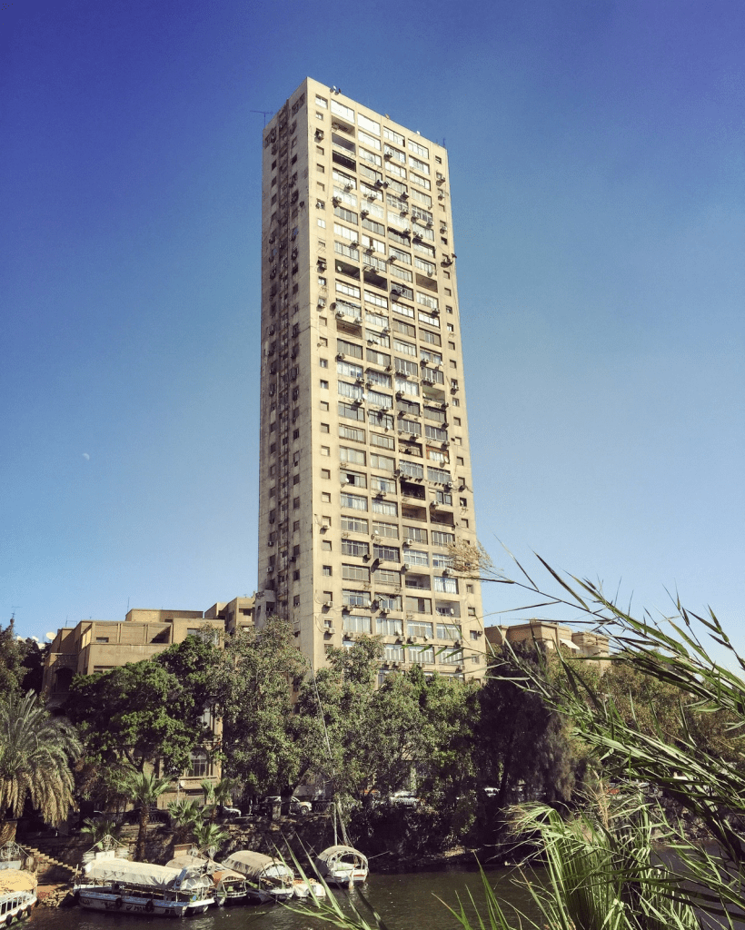 Overlooking the Nile is one of Garden City’s most famous buildings: The Belmont building. Named after the billboard of Belmont cigarettes placed above it. This building was built in 1958 by Engineer Naoum Shabib and is considered the tallest building in the neighborhood with 35 floors. Since it was first built, the Belmont building sparked controversy. The civil defense saw that it was not possible to save the residents of the high building in case of fire because it did not have equipment and stairs to reach this length. Similarly, the water company reported that it was not possible to pump water with the required force to reach all floors. Several renowned architects and consultants also expressed their concern about the design and the possible effect of winds and earthquakes. Yet, the building still stands tall and exists today defying all fears.