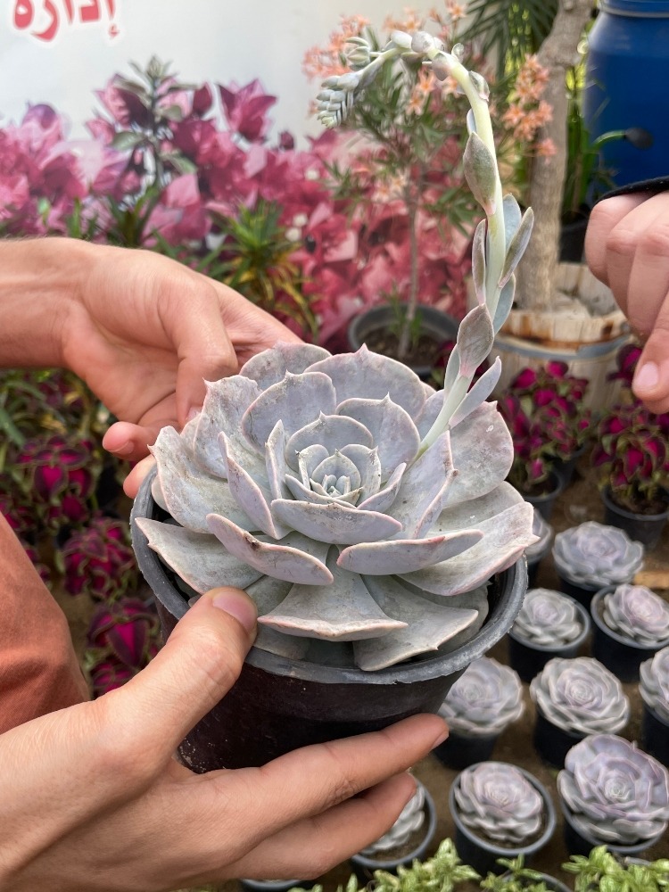 A lot of people find cacti to be long and prickly, not the prettiest kind of plant out there but when it comes to the floral variety, the impression can be quite different. Meet the echeveria cactus known as the beautiful and delicate floral cactus with thick, fleshy leaves and attractive foliage. While at the flower festival, we noticed a diverse collection of echeveria cacti, from the large to the small and from the green to the purple. Most of them cost about 40 EGP and are considered easy to care for.