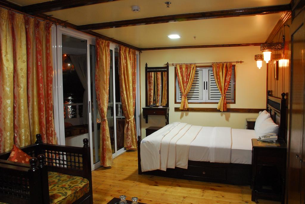 With Dahabeya Sandrine, you’ll get a glimpse of the beauty of Arabesque design, unwind on the sundeck jacuzzi, and get pampered in a luxurious cabin of your choice. The starting price, per night, for the Deluxe cabin is from $530, and for the Deluxe suite from $760. Bonus points: They have vegan and vegetarian buffets, in addition to halal and continental food.