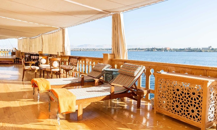 As per their website, this is the first dahabeya built according to international luxury standards. It has a refreshing pool, an Arabic-style sundeck, replicas of Egyptian artifacts, and panoramic windows. You wouldn’t want to miss that!