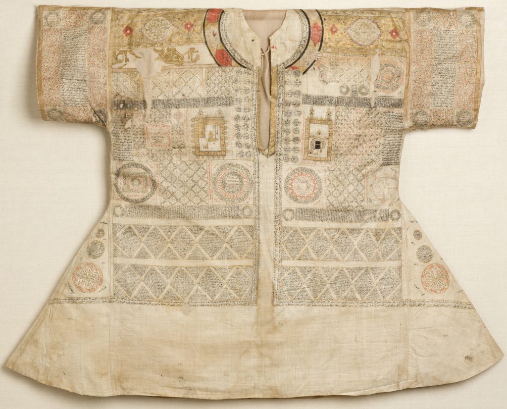 Indian-made talismanic shirt depicting Medina and Mecca from the late 16th century