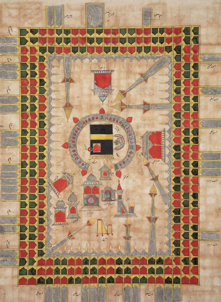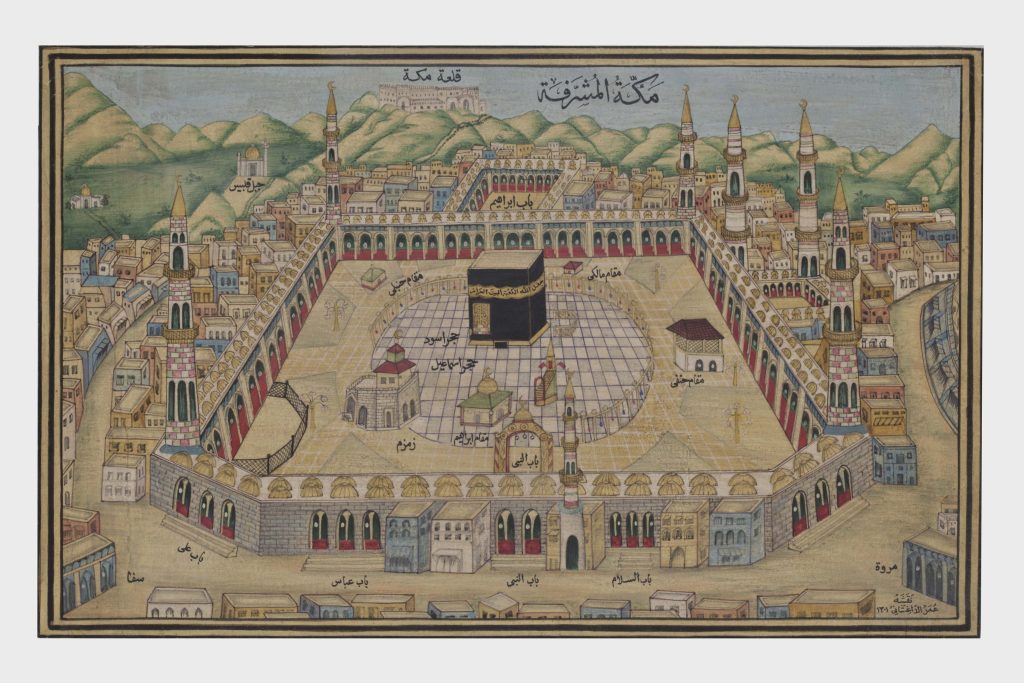 Depiction of the Masjid al-Haram in Mecca understood to be painted by Indian artists working in Mecca in the 17th or 18th century