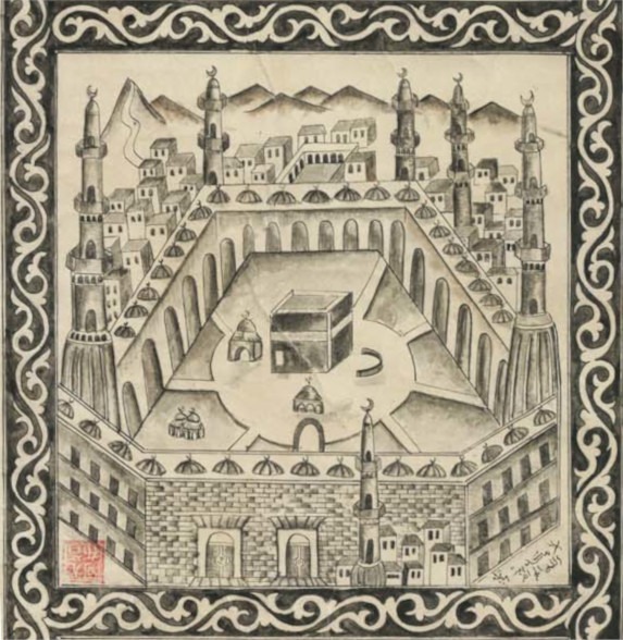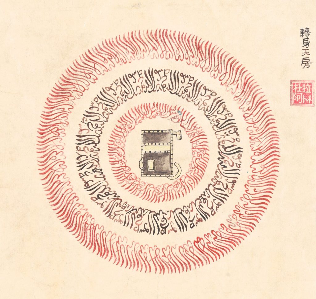 Chinese depiction of the Ka’ba surrounded by Arabic calligraphy from the 19th century