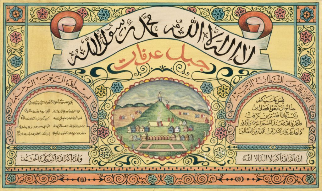 Russian depiction of Mount Arafat with verses from the Quran from 1886