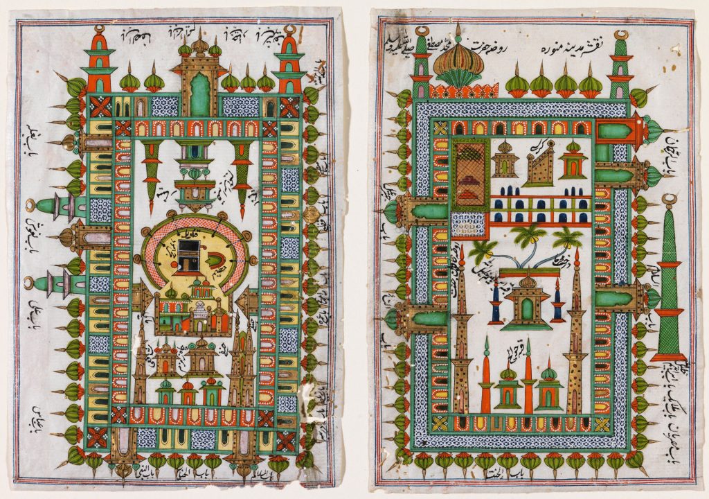 Indian depiction of Masjid al-Haram and the Prophet’s Mosque at Medina from the late 18th century