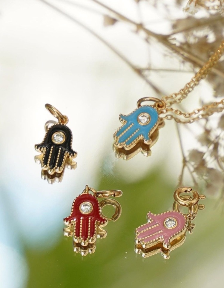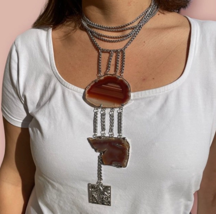 Egypt’s Hana Designs, owned by designer Sherihan Hayaly, includes gemstones in their jewelry designs. The designer boasts the use of stones in her designs and explains the benefits of the different stones. For example, the cherry quartz stone, found in their necklaces is said to have a variety of healing capabilities that range from the treatment of psychological traumas to awakening one’s emotional energy center.