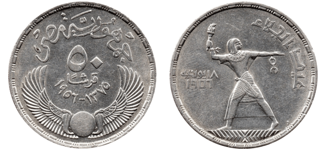 In September 2022, the Egyptian Ministry of Finance’s proposal to introduce the country’s first-ever two-pound coin was approved by the cabinet. To meet rising inflation and the needs of a mostly cash-based economy, the two-pound coin will join the one-pound coin, 50-piastres coin, and 25-piasters coin. However, while Egypt lacks the numerous coin denominations that its neighbors have, the Central Bank of Egypt has for decades been minting numerous commemorative coins that mark and reflect the nation’s modern history through wars and revolutions. These commemorative coins mark great events that changed the course of the country’s history, the country’s most notable men and women are presidents or musicians, markers of national pride, and other events and institutions that make up a constructed national history. Looking back through Egypt’s commemorative coins brings you through not just a history of modern Egypt, but a notion of the state’s aspirations and its achievements that are understood as worth cherishing. It is not so much a history of how it was, but a very selective understanding of the nation’s history. Looking through historical and commemorative coins can open up new narratives and ways of framing the past, for there are always two sides to every coin.