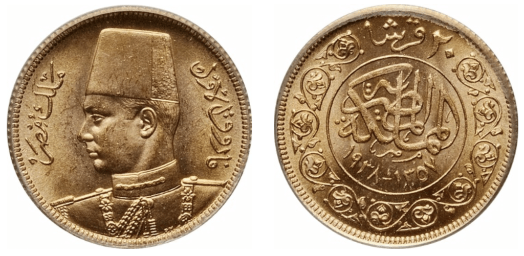 Following the union of King Farouk and Queen Farida known by Safinaz Zulficar, in 1938 at Qubba Palace the two inaugurated their marriage and three daughters soon followed. However, unlike previous royal marriages, the increasing concern of maintaining the popularity of the Egyptian royal family meant that it was a highly publicized event and Queen Farida had a very public role, unlike female members of the royal family before her. To my knowledge, this is the first commemorative coin ever issued in Egypt, and it is telling that the marriage between Farida and Farouk was the event to start this trend that the Central Bank of Egypt would carry out through the coming century.