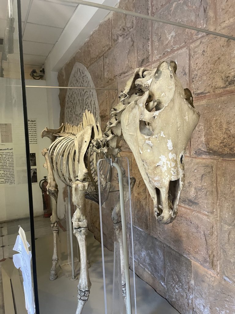 My tour guide, Ahmed told me that the hunting museum was once a horse stable during the times of the prince. You can even see the windows which the horses used to dangle their faces from. The prince was one of the most famous Arab stallions’ breeders and has published a number of books in that area, including two volumes titled “About Arabian Stallions” and another one titled “About Stallions in Egypt.” He was passionate about drawing Arabian stallions and representing the grace and beauty of their