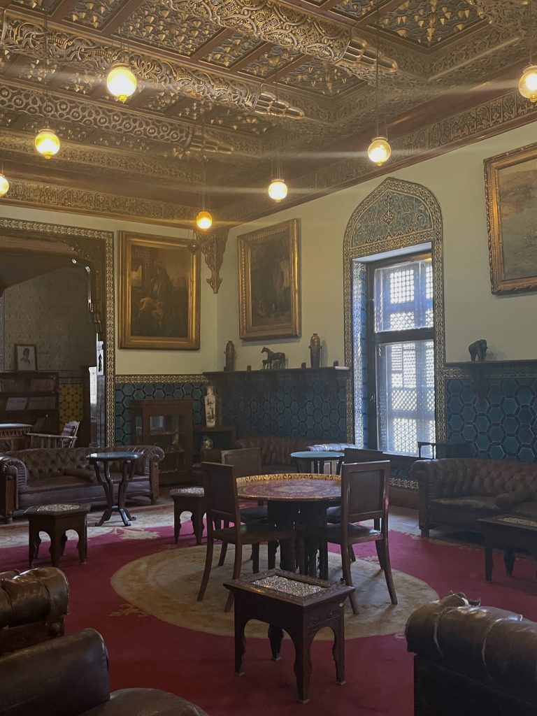 Surrounding the beautiful palace is the royal gardens including a collection of cacti, palm trees and other rare plants collected by Prince Mohammed Ali from all over the world. The mosque is one of the highlights of the visit to the palace. Even though it is small in size, its beauty transforms you into the Islamic period from the moment you walk into it. On your right, you will see the mihrab (niche) decorated with blue ceramic tiles and a small minbar (pulpit) decorated with gilded decorative ornaments.