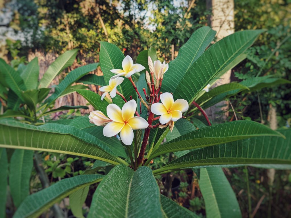 Indian jasmine, which is also commonly known as frangipani, is an impressive tropical-looking tree that grows incredibly well in Middle Eastern climates and has delicate flowers that produce a beautiful smell, which are oddly most pungent at night. This hardy plant loves all-day sun, but should be watered well and be in well-draining soil. While the Indian jasmine is an impressive-looking plant in the summer and spring months, once winter comes, however, it loses it leaves and flowers as appears as an awkward-looking skeleton for several months before again coming into bloom.