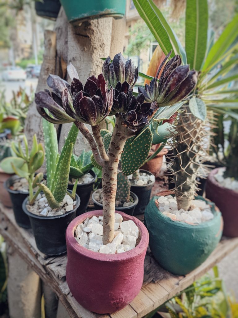 Aeonium is an interesting looking and versatile plant perfect for hot Middle Eastern climates. While it flourishes in full sun, the plant can also cope with more shaded areas, and can be a very easy plant to maintain if you avoid overwatering it. While the leaves create a beautiful almost rose-like structure, the plants also occasionally produce flowers.