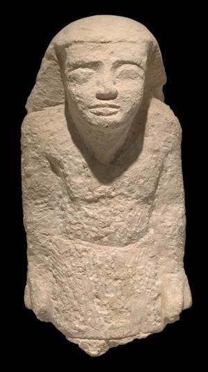 The piece is only the upper part of a statue of a standing man with his arms bedside him; the hieroglyphs on the right arm dates back to a time between 2,500 and 2,000 B.C. The assumption is that it belonged to a senior official from around the decline of the Old Kingdom and start of the First Intermediate Period.