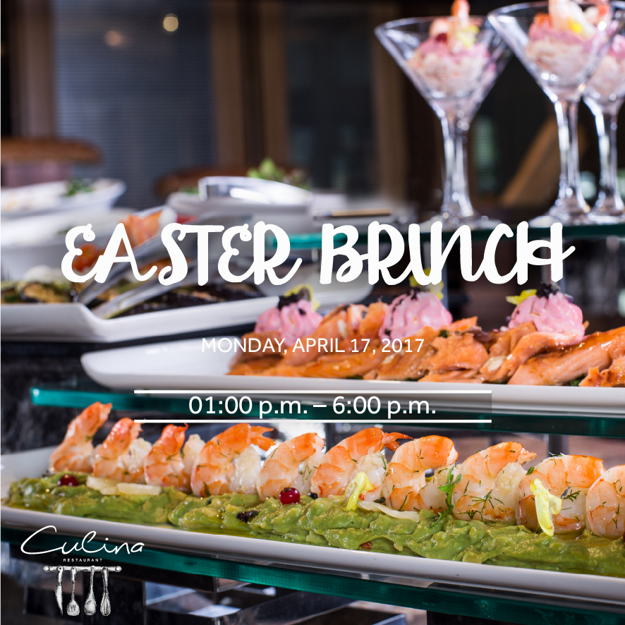 Begin your Easter weekend on Friday morning with a healthy (or not) and delicious brunch at Culina. The royal brunch buffet will feature steaks, turkey, BBQ, seafood, an array of seasonal salads, egg stations and many more delicacies.