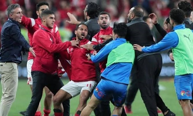 The story began during last Thursday’s match, which was held at the Mohammed bin Zayed Stadium in Abu Dhabi. Zamalek’s Tarek Hamed unprofessionally tackled Al Ahly’s Mahmoud Kahraba, which led to Kahraba hitting Hamed in retaliation. Keep in mind that this was Kahraba’s first match as an Ahly player against Zamalek after leaving the club, and Zamalek fans were already furious as soon as he entered the field.
