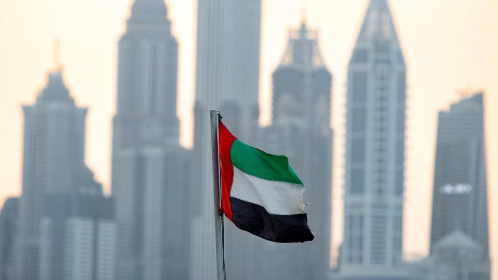 The second entry shows the map of the UAE drawn with seven stripes in the country’s flag colors, representing unity.