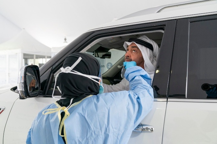 His Highness Sheikh Mohamed bin Zayed, Crown Prince of Abu Dhabi and Deputy Supreme Commander of the UAE Armed Forces, inaugurated the drive-through COVID-19 test centre.