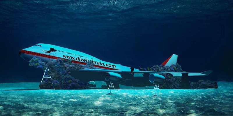 The underwater theme park will eventually cover a total area of 100,000 square meters, with a submerged Boeing 747 as its centerpiece. The Boeing 747 is the largest aircraft ever to be submerged! The mega-project is the result of the partnership between the Supreme Council for Environment, the Bahrain Tourism and Exhibitions Authority (DTEA), and the private sector.