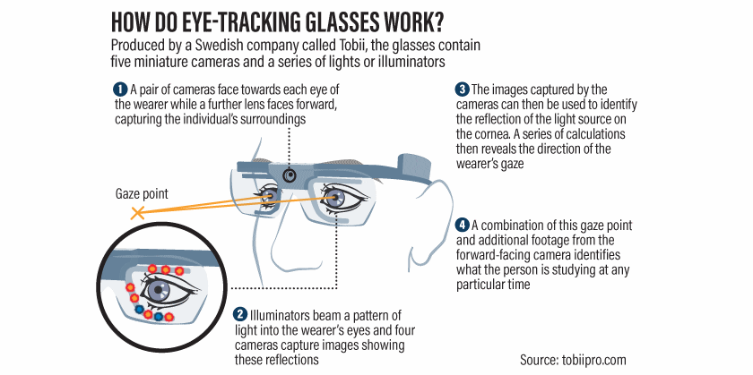 According to The National, research by the International Centre for Academic Integrity showed that 39 percent of students cheated on exams and 64 percent cheated on written assignments. To put Tobii’s glasses to the test, undergraduates at Zayed University undertook a mock exam. When the team reviewed the footage, they caught all acts of cheating from eye movement, looking at other students’ papers, phones, and classic cheat sheets.