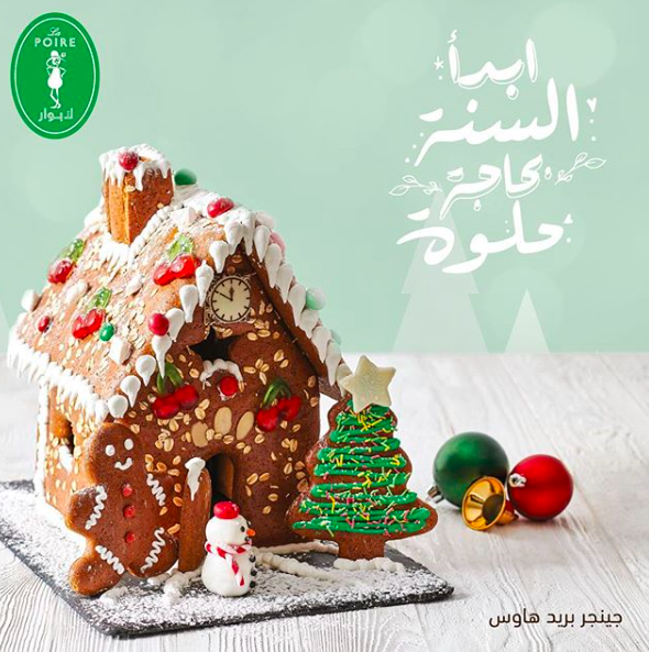 Price: Medium gingerbread house for EGP 175. Large gingerbread house for EGP 550. Christmas cake for EGP 250.