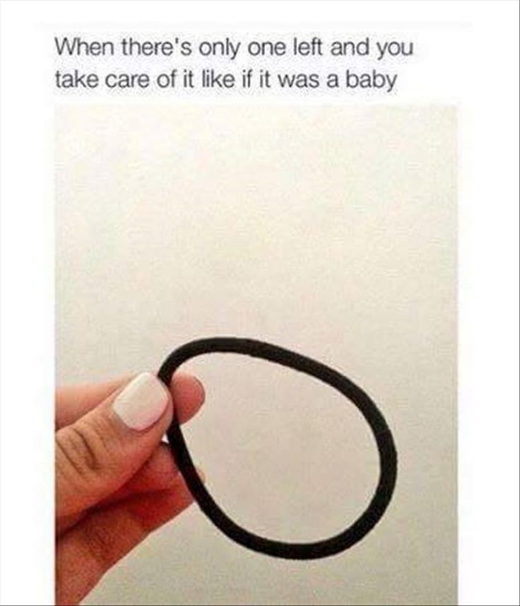 #GirlProblems101! Not all girls wear an extra hair band on their wrists for emergencies. Some of them go out looking effortlessly chic with no back up, and then complain about humidity and the resulting hair disaster. Who do you think they turn to? You, with the hair band on your wrist! Problem is, they never give it back.