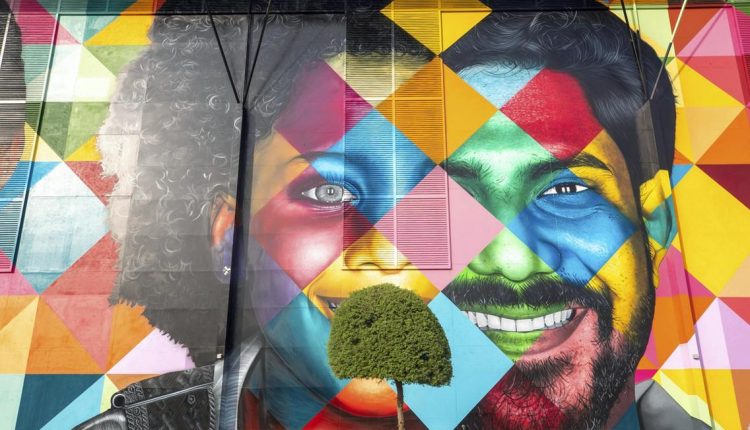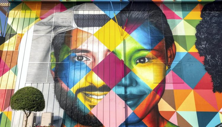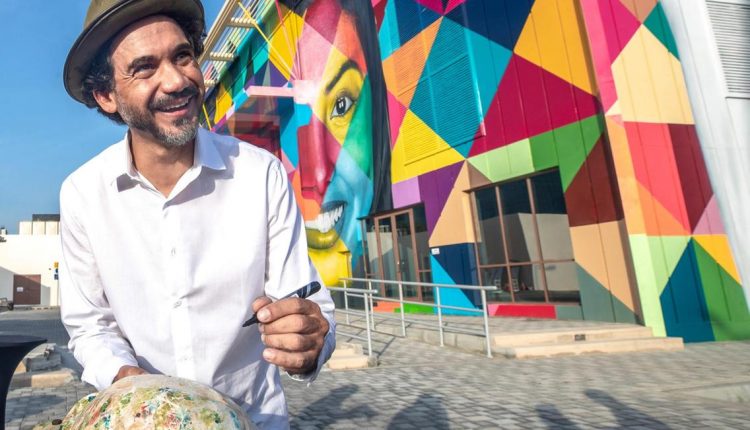 Occupying an area of 2,000 square meters, the artwork is considered one of Eduardo Kobra’s bigger murals incorporating signature elements of his such as harlequin patterns and vivid imagery.