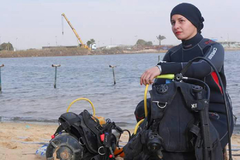 The female diver graduated from the Faculty of Engineering, Petroleum and Mining department, in Cairo. She couldn’t apparently work underwater before having a background about diving, so she decided to take diving courses for three years upon graduating in several places, among them was an Emirati-Egyptian scholarship at the Arab Academy for Science and Technology and Maritime Transport.