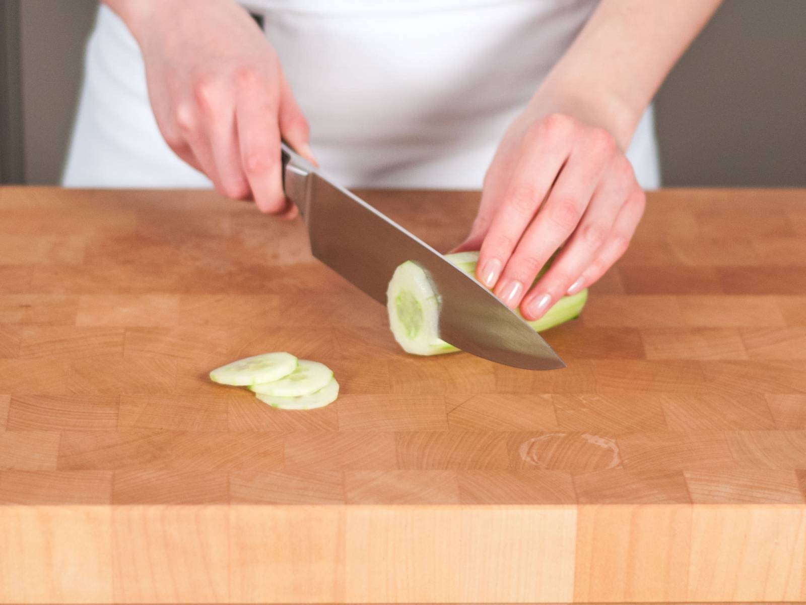 Once you get all the ingredients, Peel then chop cucumbers into thin ring-shaped slices. In a saucepan, bring rice, and water to a boil. Make sure to reduce heat to low and cook for approximately 12 – 15 minutes.