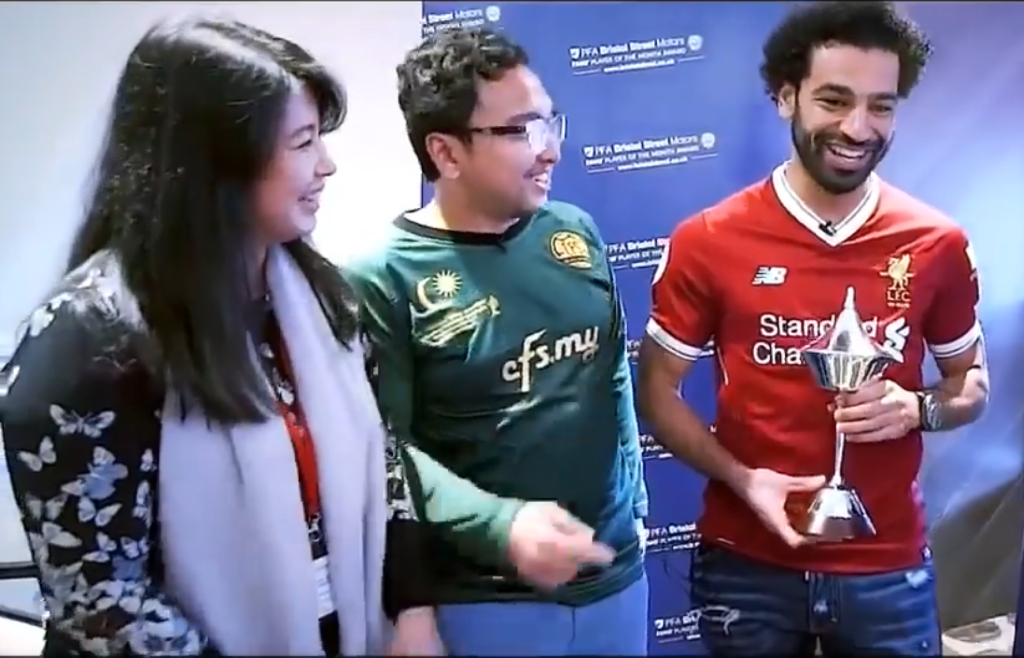 A Malaysian, football fanatic, couple got the chance to meet their favorite Mo Salah to hand him Best Player of the Month trophy. They were randomly chosen by the event organizers to meet him and their reactions, to the fact that they were going, is simply hilarious.