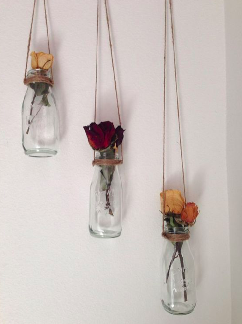 There’s also several ways to put vases in your room in a cool and unordinary way. You can hang them on the wall with a wicker rope. You can also hang them in a wooden frame.