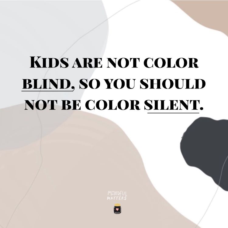 We need to change the conversation and remind ourselves that kids are not color blind, so you should not be color silent. Research shows that children take note of racial differences as early as six-months-old. As kids get older, they take cues from society and home and they get conditioned not to discuss these differences, which leads to more stereotypes, assumptions, and a growing, unspoken divide amongst groups of people. This becomes a systemic problem, making it difficult to fix later on.
