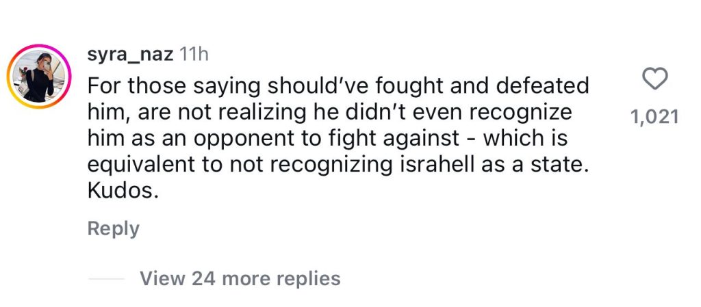 One of the users even commented: “He didn’t even recognize him as an opponent to fight against – which is equivalent to not recognizing israhell as a state. Kudos.”