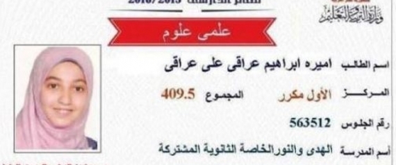 Egyptian student Amira Iraqi got a 409.5 out of 410 and was ranked the first in the entire country. The Ministry of Education made a habit of congratulating first rankers by phone and in person, but Amira was not congratulated neither in person nor by phone.