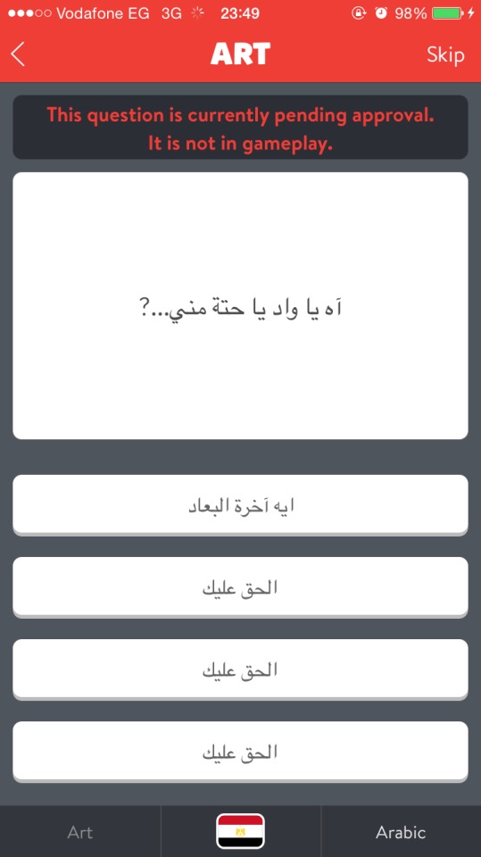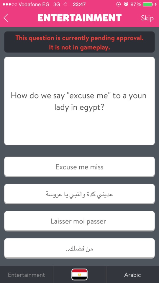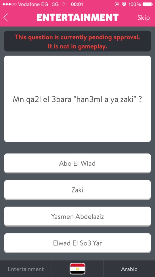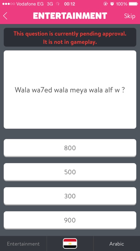 All it requires is a wheel spin, which lands you a question from one of six categories (entertainment, history, chemistry, etc.) and you only have 25 seconds to nail it. As usual, Egyptians couldn’t leave it alone and felt obliged to add their own signature.