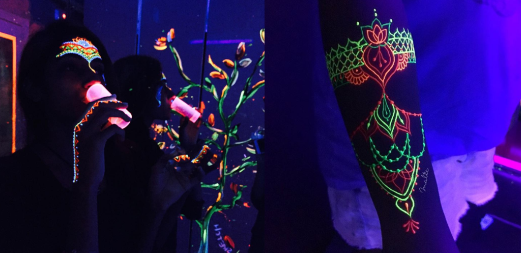 Maybe you’ve seen henna designs before, but probably not like this. And to be clear, these glow-in-the-dark designs aren’t truly henna.