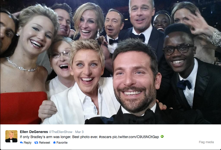 Who said selifies are best taken on Instagram? Ellen DeGeneres took the most popular selfie of all time, loaded with A-listers. It’s now the most retweeted tweet… ever! In less than 40 minutes, the tweet crashed the record for retweets previously held by Barack Obama.