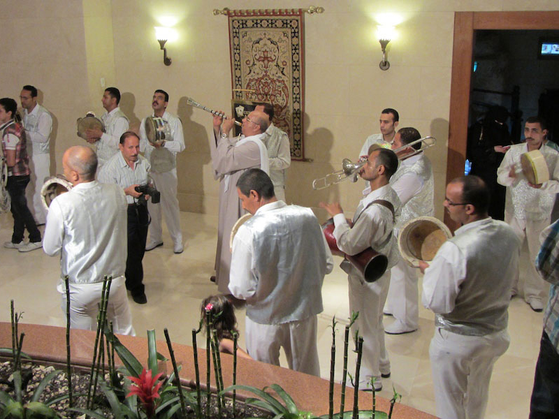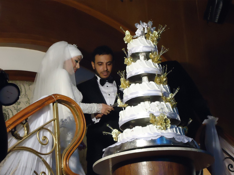 Since it’s THE bride, her entrance should be like no other. They leave us for around ten minutes wondering where she’ll come from. We look right, left, up and down until our necks couldn’t take it anymore. After making a scene out of it, she eventually enters the hall as the DJ plays Majida El Roumi’s Tolly Bel Abyad. It’s apparently the national wedding anthem to any, if not all, Egyptian weddings.