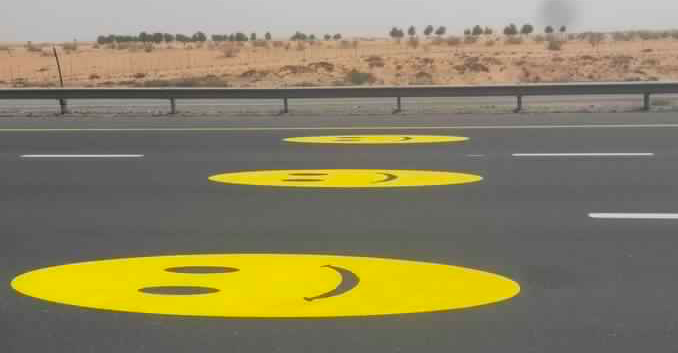While entering the northern side of the country via Sheikh Mohamed bin Zayed Road, make sure you smile back at the three yellow emojis that will be greeting you. The emojis will be accompanied by a ‘Drive safely’ message in Arabic, English and Urdu .