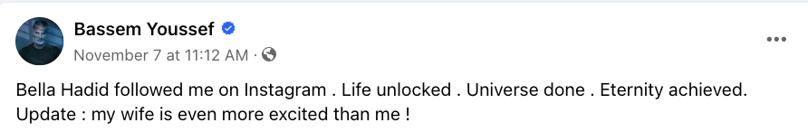 Along with the stage and screen, Youssef spoke up at the “It’s A lot podcast.” When asked how does he see the ongoing violence ending, he kept it simple and said “We have to ceasefire now.”