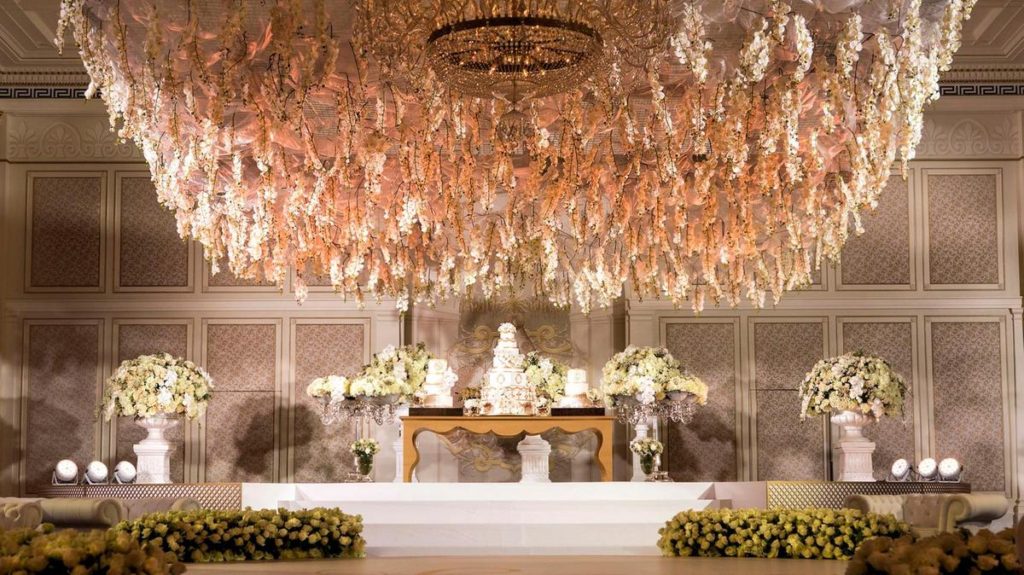 In the heart of Dubai, and in the first 39 floors of the world’s tallest building, the Armani hotel is named after designer Giorgio Armani. And just like the luxury Italian designer’s haute couture and leather goods, the hotel speaks world class luxury. Formerly hosting Balqees’ wedding, the ballroom offers a landscape garden by the Dubai fountain waterfront as a backdrop.