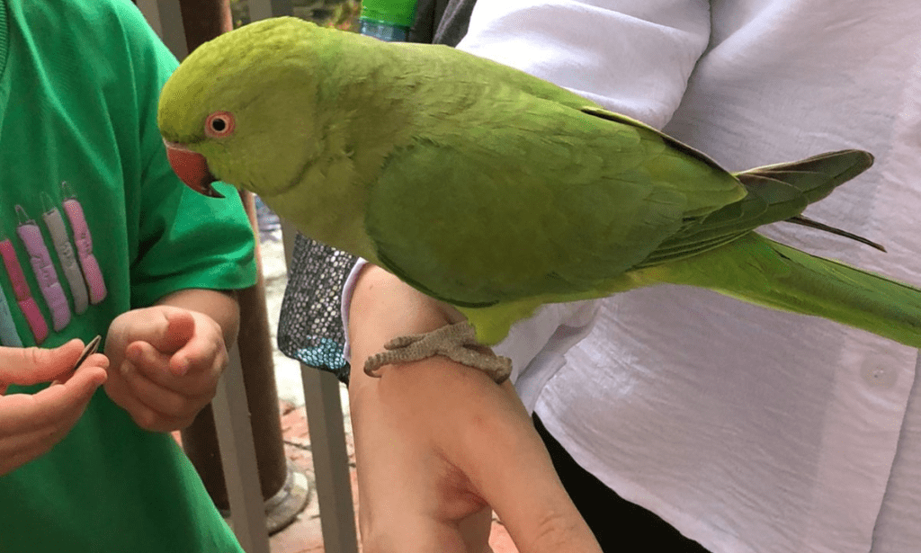 Besides the farm, there’s a caged space that’s home to the green parakeet. On entering, you’re given sunflower seeds to feed the green parakeets.