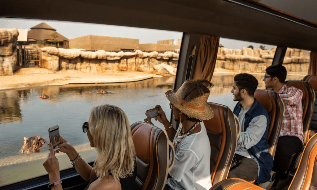 Unlike animal safaris in Africa, where the tour is usually done in an open-aired jeep, in Dubai, you get the safari experience in the comfort of a bus with expansive glass windows for a full view of the animals.