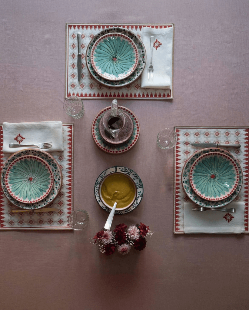 If you love maximalist energy, Kin Suki is your go-to. Every piece is designed to effortlessly mix and match, creating tablescapes that feel vibrant yet harmonious.